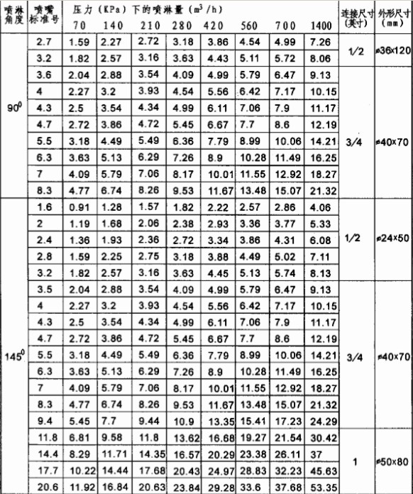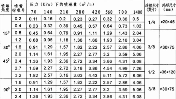 壓力/流量比值最小。無(wú)內(nèi)件設(shè)計(jì),流道順暢,抗堵塞。啟噴壓力小,操作彈性大。一般壓力時(shí)不易霧化。液滴直徑分布均勻。噴淋角度隨壓力變化而變化。推薦噴淋角度:15°~145°。常用材料:1Cr18Ni9Ti;0Cr18Ni9(304SS);0Cr17Ni14Mo2(316SS);00Cr17Ni14Mo2(316L);哈氏合金;聚丙烯(PP);聚四氟乙烯(PTFE);海軍黃銅。