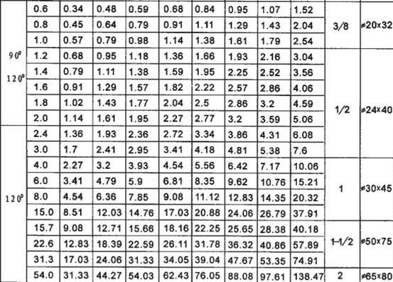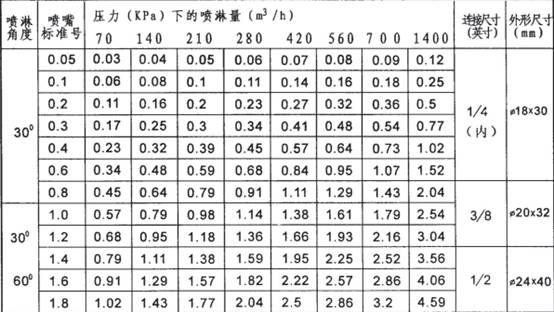 壓力/流量比值最小。無(wú)內(nèi)件設(shè)計(jì),流道順暢。啟噴壓力小,操作彈性大。壓力較高時(shí)易霧化。液滴直徑分布均勻。噴淋角度穩(wěn)定。推薦噴淋角度:30°,60°,90°,120°。常用材料:1Cr18Ni9Ti;0Cr18Ni9(304SS);0Cr17Ni14Mo2(316SS);00Cr17Ni14Mo2(316L);哈氏合金;聚丙烯(PP);聚四氟乙烯(PTFE);海軍黃銅。